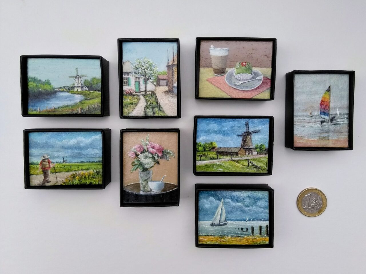 Kadoosjes, olieverfschilderijtjes in een doosje